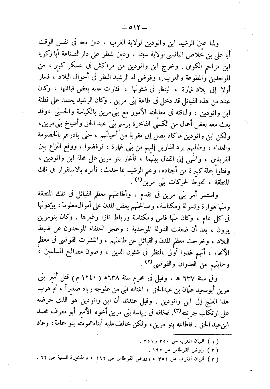(¬3) البيان المغرب ص 351، وروض القرطاس ص 192، والذخيرة السنية ص 62