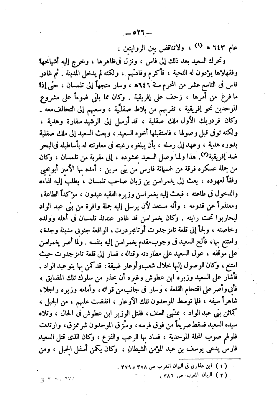 (¬1) ابن عذارى في البيان المغرب ص 378 و 379.