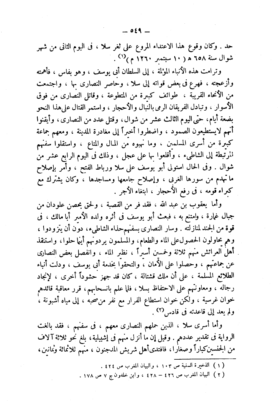 حد. وكان وقوع هذا الاعتداء المروع على ثغر سلا، في اليوم الثاني من شهر شوال سنة 658 هـ (10 سبتمبر 1260 م) (¬1).