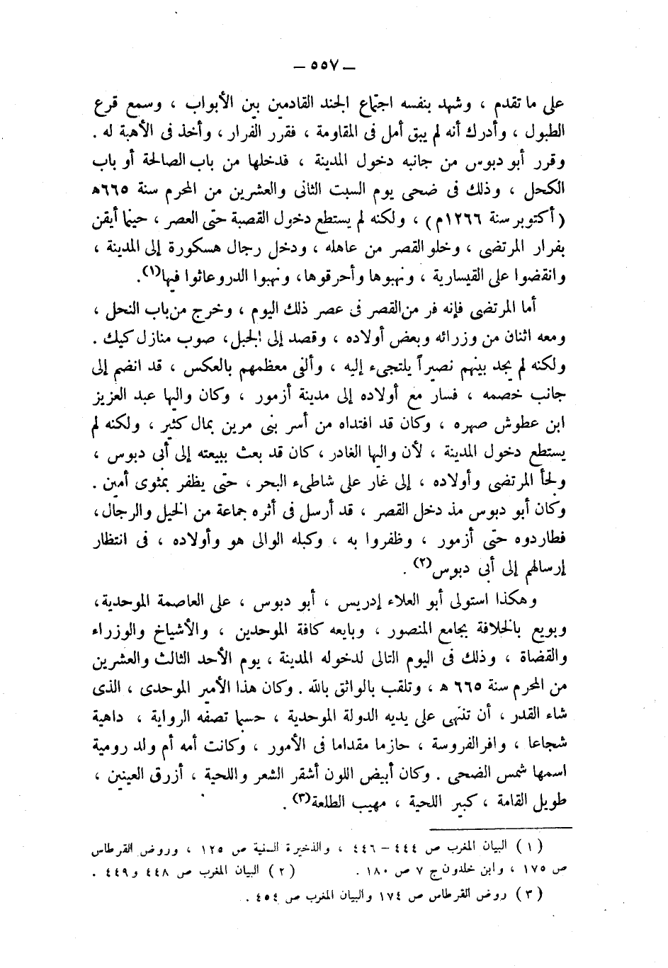 (¬1) البيان المغرب ص 444 - 446، والذخيرة السنية ص 125، وروض القرطاس ص 175، وابن خلدون ج 7 ص 180.