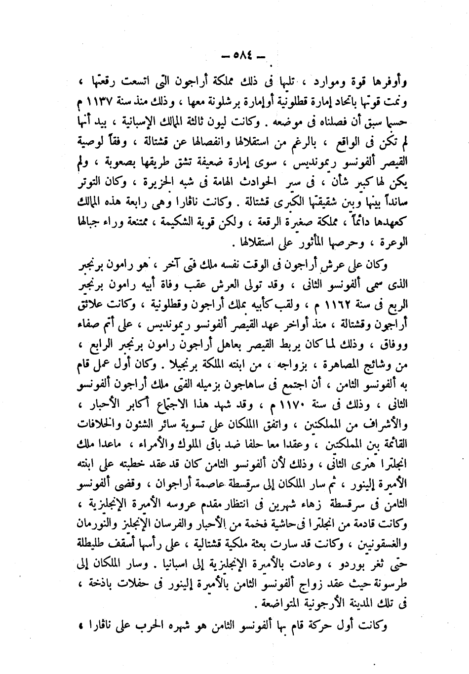 وأوفرها قوة وموارد، تليها في ذلك مملكة أراجون التي اتسعت رقعتها، ونمت قوتها باتحاد إمارة قطلونية أو إمارة برشلونة معها، وذلك منذ سنة 1137 م حسبما سبق أن فصلناه في موضعه. وكانت ليون ثالثة الممالك الإسبانية، بيد أنها لم تكن في الواقع، بالرغم من استقلالها وانفصالها عن قشتالة، وفقاً لوصية القيصر ألفونسو ريمونديس، سوى إمارة ضعيفة تشق طريقها بصعوبة، ولم يكن لها كبير شأن، في سير الحوادث الهامة في شبه الجزيرة، وكان التوتر سائداً بينها وبين شقيقتها الكبرى قشتالة. وكانت نافارا وهي رابعة هذه الممالك كعهدها دائماً، مملكة صغيرة الرقعة، ولكن قوية الشكيمة، ممتنعة وراء جبالها الوعرة، وحرصها المأثور على استقلالها.