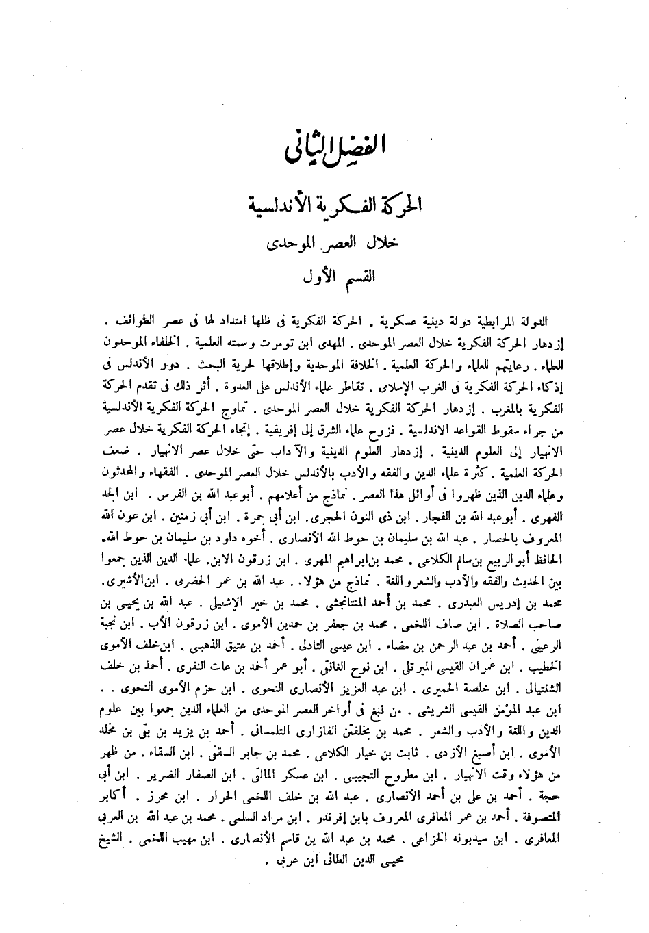 الفصل الثاني الحركة الفكرية الأندلسية خلال العصر الموحدي