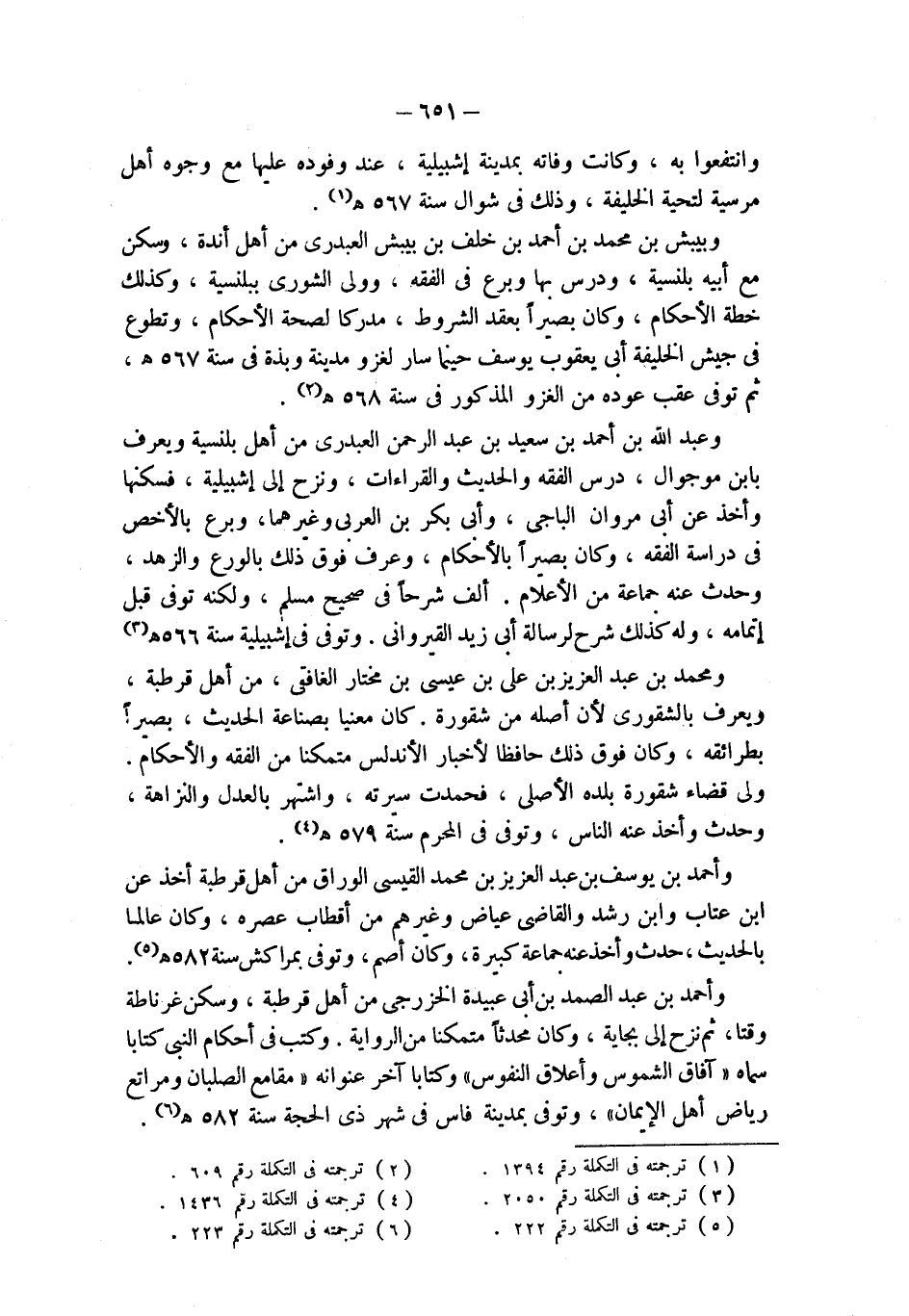 وعبد الله بن أحمد بن سعيد بن عبد الرحمن العبدرى من أهل بلنسية ويعرف بابن موجوال، درس الفقه والحديث والقراءات، ونزح إلى إشبيلية، فسكنها وأخذ عن أبي مروان الباجى، وأبي بكر بن العربى وغيرهما، وبرع بالأخص في دراسة الفقه، وكان بصيراً بالأحكام، وعرف فوق ذلك بالورع والزهد، وحدث عنه جماعة من الأعلام. ألف شرحاً في صحيح مسلم، ولكنه توفي قبل إتمامه، وله كذلك شرح لرسالة أبي زيد القيروانى. وتوفي في إشبيلية سنة 566 هـ (¬3). ومحمد بن عبد العزيز بن علي بن عيسى بن مختار الغافقي، من أهل قرطبة، ويعرف بالشقورى لأن أصله من شقورة. كان معنيا بصناعة الحديث، بصيراً بطرائقه، وكان فوق ذلك حافظا لأخبار الأندلس متمكنا من الفقه والأحكام. ولى قضاء شقورة بلده الأصلى، فحمدت سيرته، واشتهر بالعدل والنزاهة، وحدث وأخذ عنه الناس، وتوفي في المحرم سنة 579 هـ (¬4).