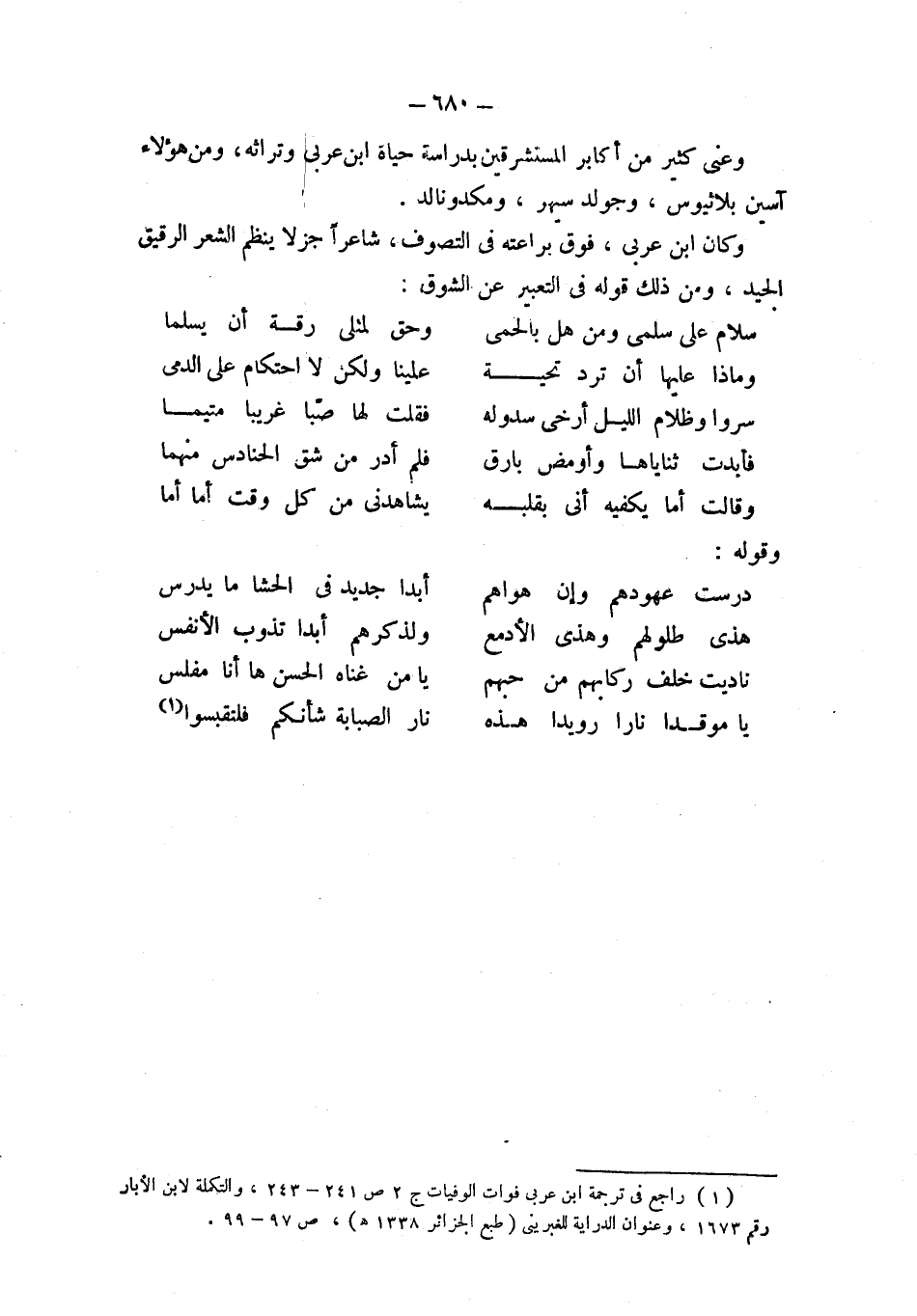(¬1) راجع في ترجمة ابن عربي فوات الوفيات ج 2 ص 241 - 243، والتكملة لابن الأبار رقم 1673، وعنوان الدراية للغبرينى (طبع الجزائر 1338 هـ)، ص 97 - 99