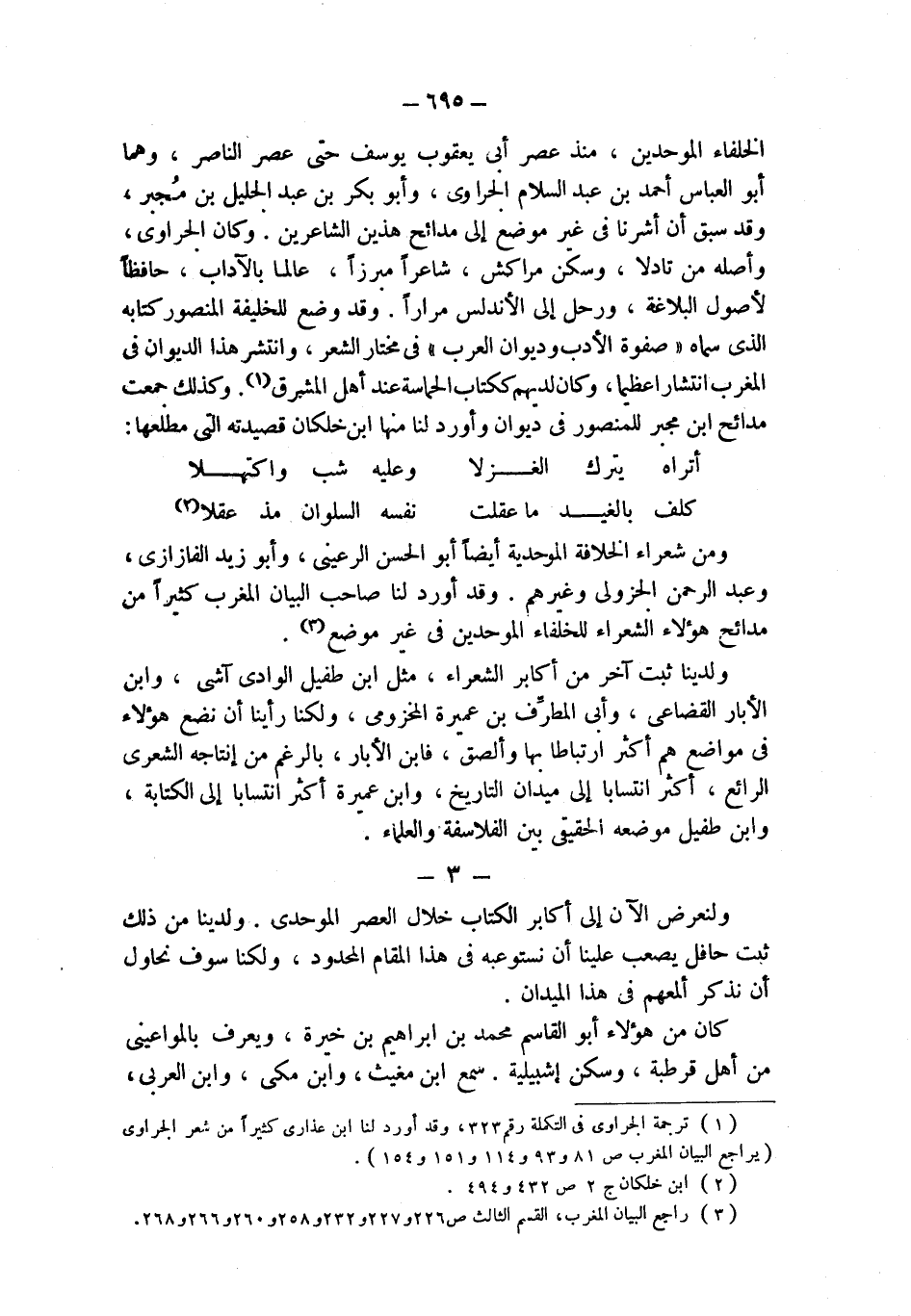 (¬1) ترجمة الجراوى في التكملة رقم 323، وقد أورد لنا ابن عذارى كثيراً من شعر الجراوي (يراجع البيان المغرب ص 81 و 93 و 114 و 151 و 154).
