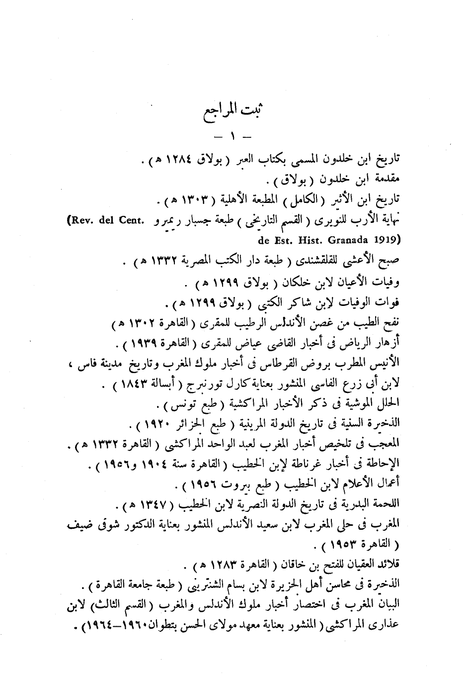 أعمال الأعلام لابن الخطيب (طبع بيروت 1956).