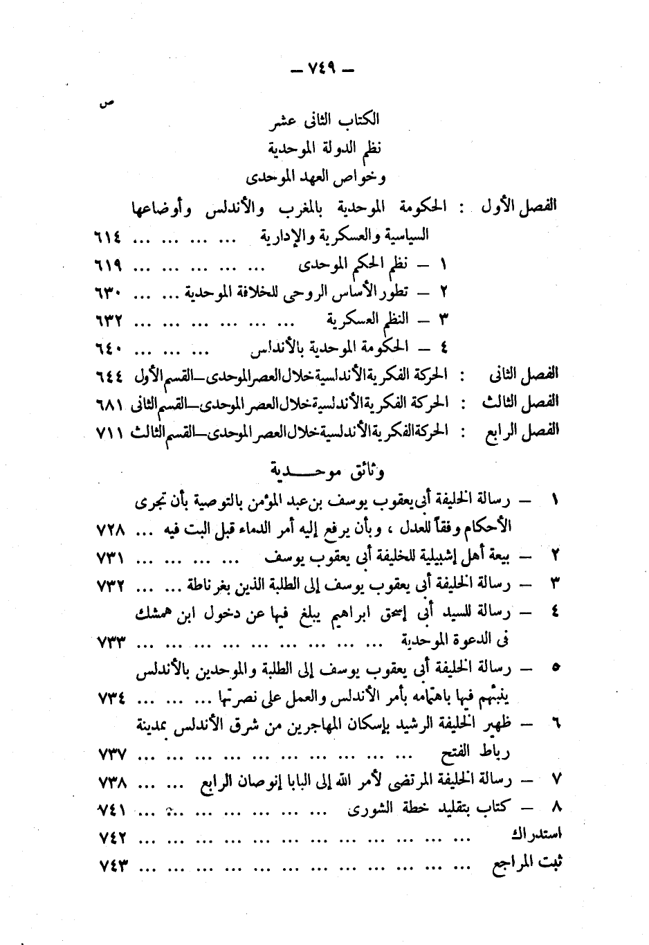 3 - رسالة الخليفة أبى يعقوب يوسف إلى الطلبة الذين بغرناطة ........... 732