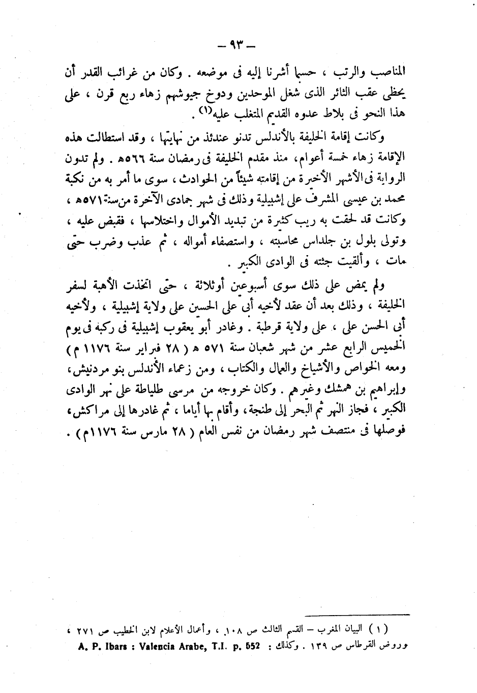(¬1) البيان المغرب - القسم الثالث ص 108، وأعمال الأعلام لابن الخطيب ص 271، وروض القرطاس ص 139. وكذلك: A. P. Ibars: Valencia Arabe, T. I. p. 552