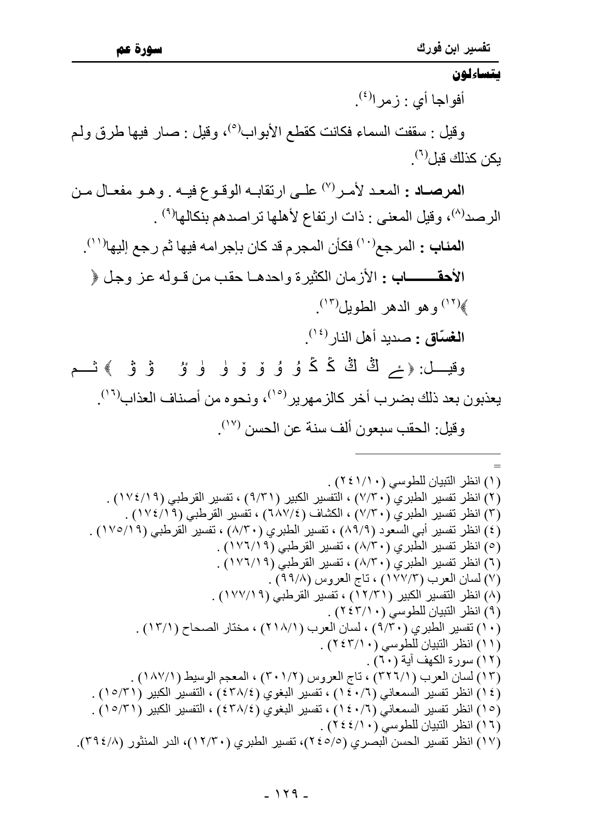 الأحقاب: الأزمان الكثيرة واحدها حقب من قوله - عز وجل - {أَوْ أَمْضِيَ حُقُبًا}