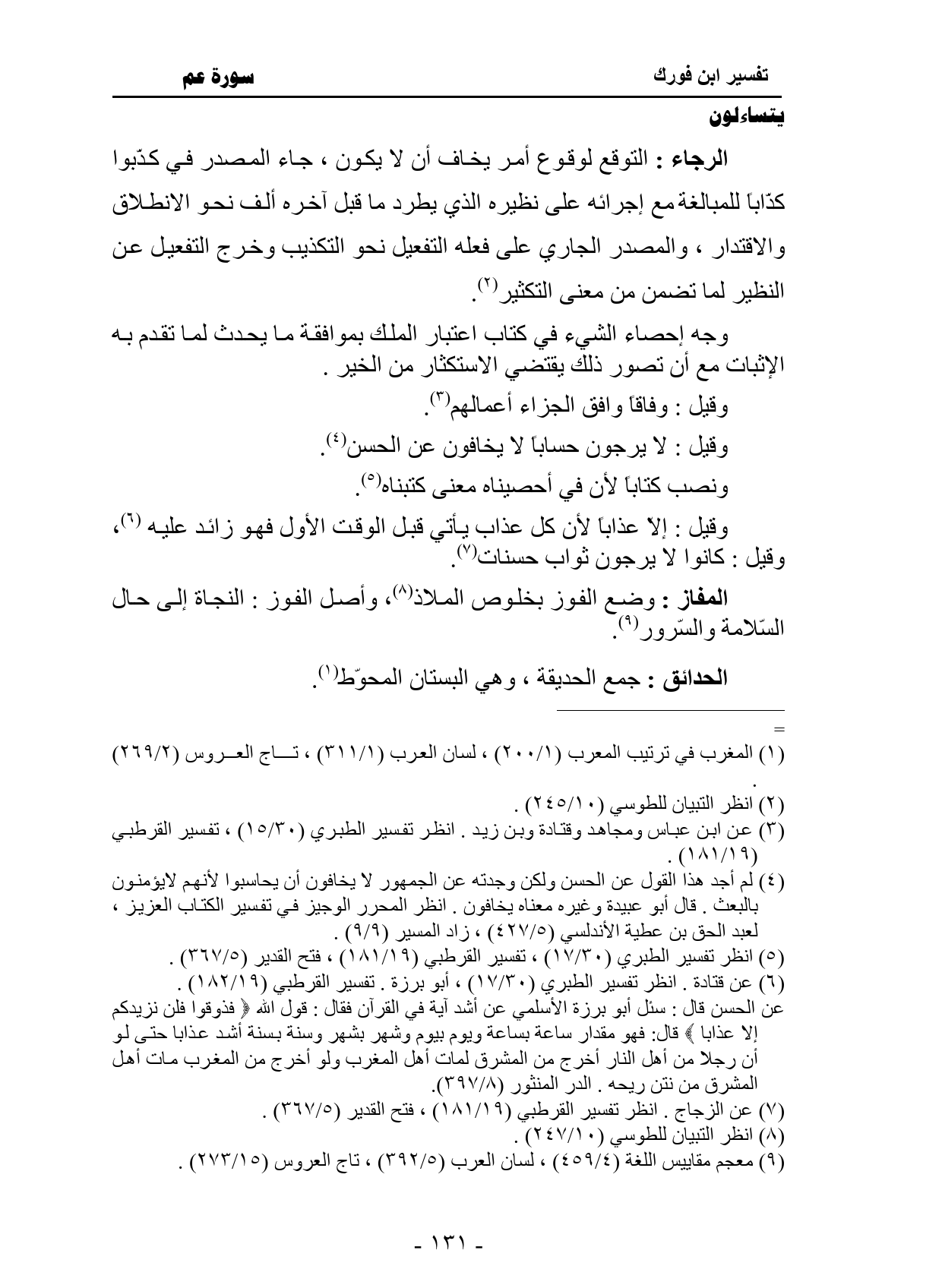 وأصل الفوز: النجاة إلى حال السّلامة والسّرور.