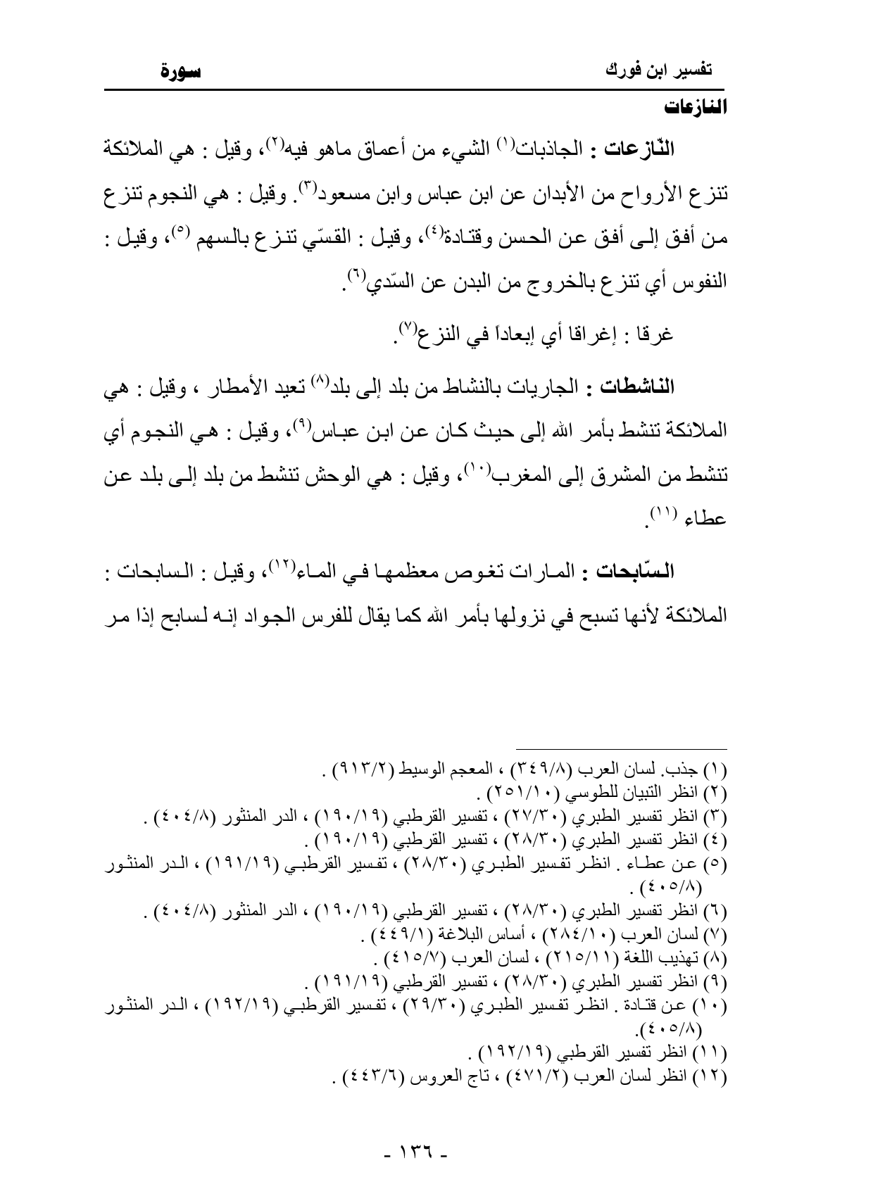 النّازعات: الجاذبات الشيء من أعماق ماهو فيه، وقيل: هي الملائكة
