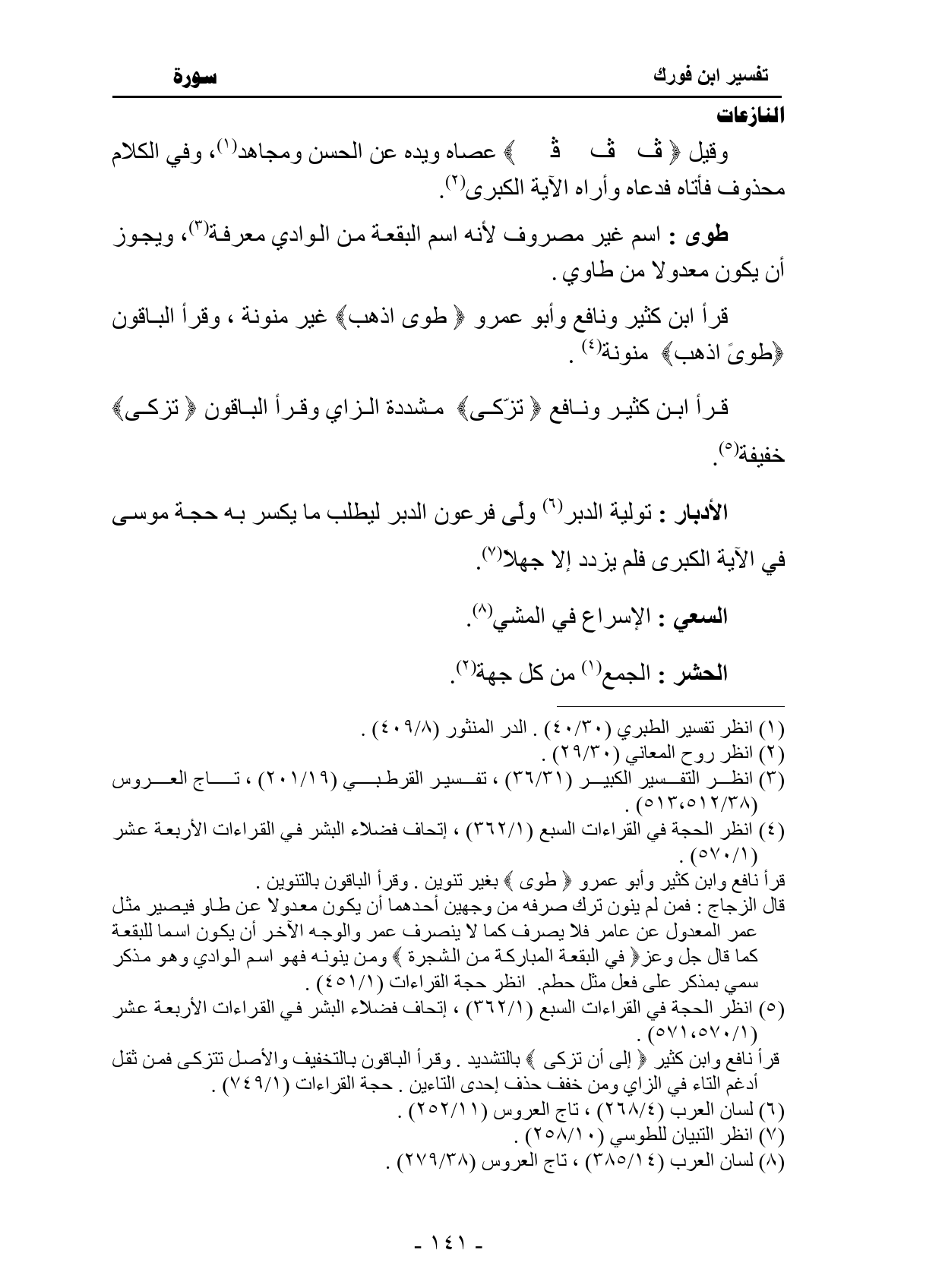 قرأ ابن كثير ونافع وأبو عمرو {طوى اذهب}