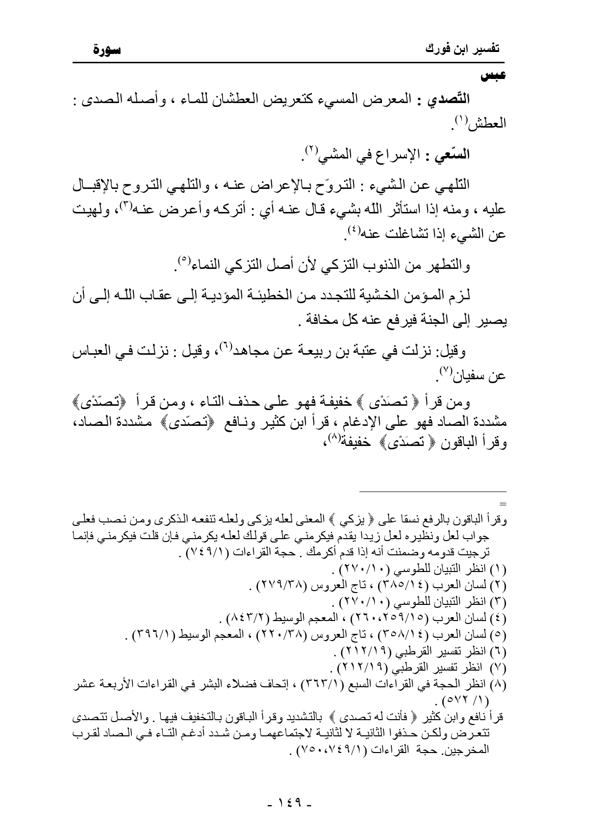 قرأ ابن كثير ونافع {تَصَّدَّى} مشددة الصاد.