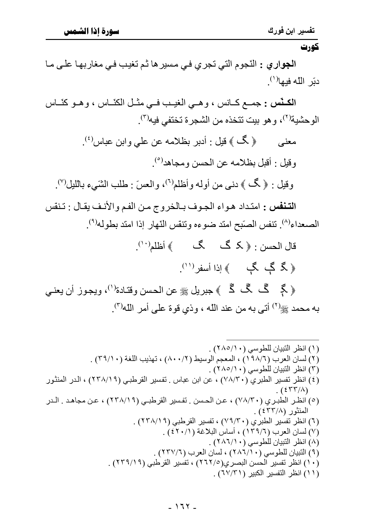الجواري: النّجوم التي تجري في مسيرها ثم تغيب في مغاربها على ما دبّر الله فيها.
