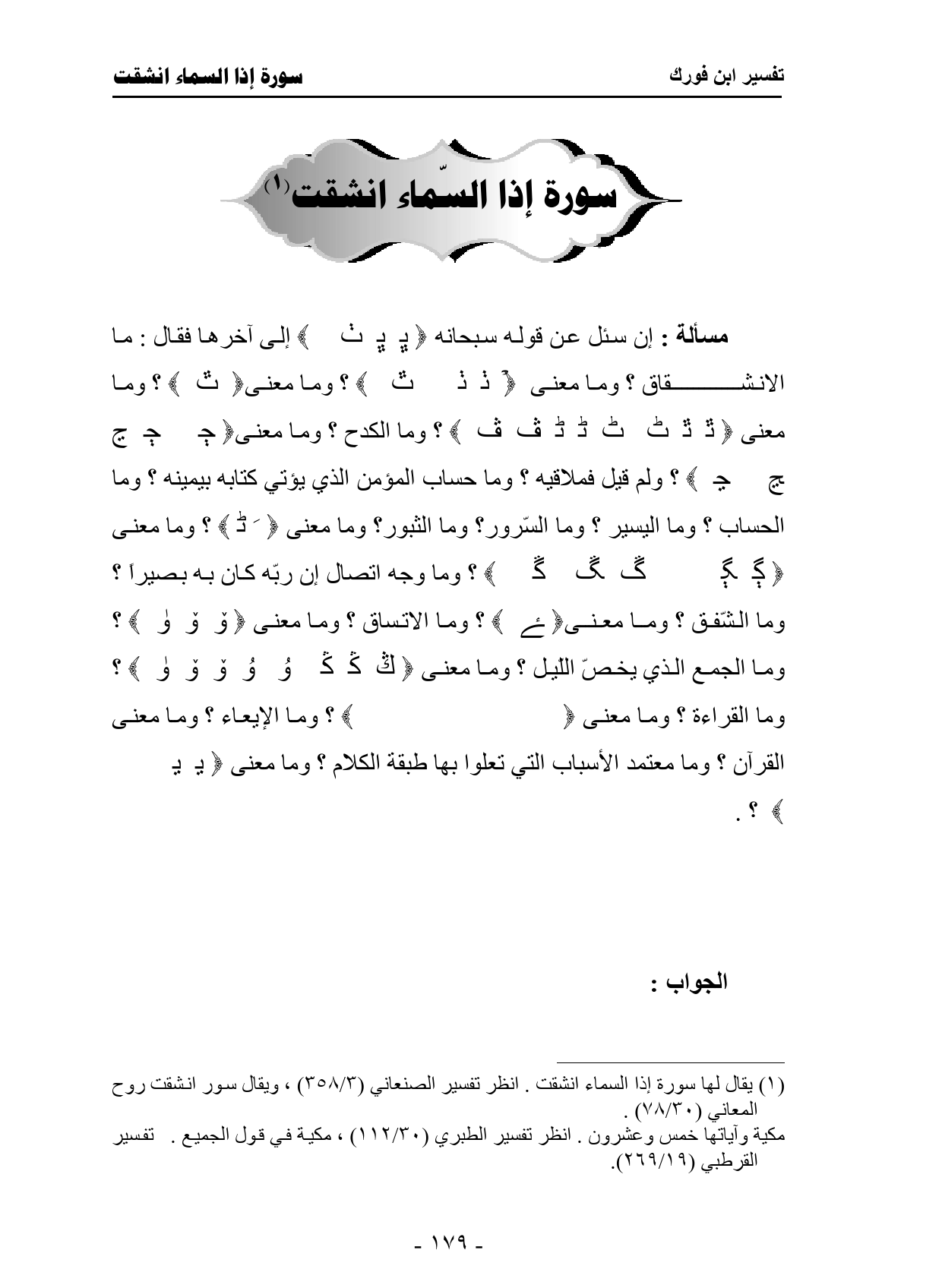 مسألة: إن سئل عن قوله سبحانه {إِذَا السَّمَاءُ انْشَقَّتْ (1) }