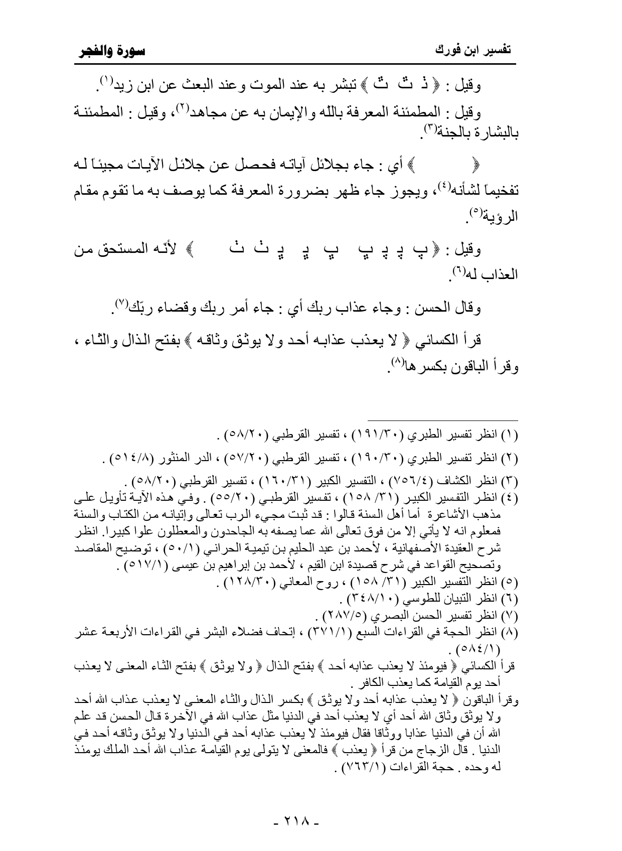 قرأ الكسائي {فَيَوْمَئِذٍ لَا يُعَذِّبُ عَذَابَهُ أَحَدٌ (25) وَلَا يُوثِقُ وَثَاقَهُ أَحَدٌ (26) }