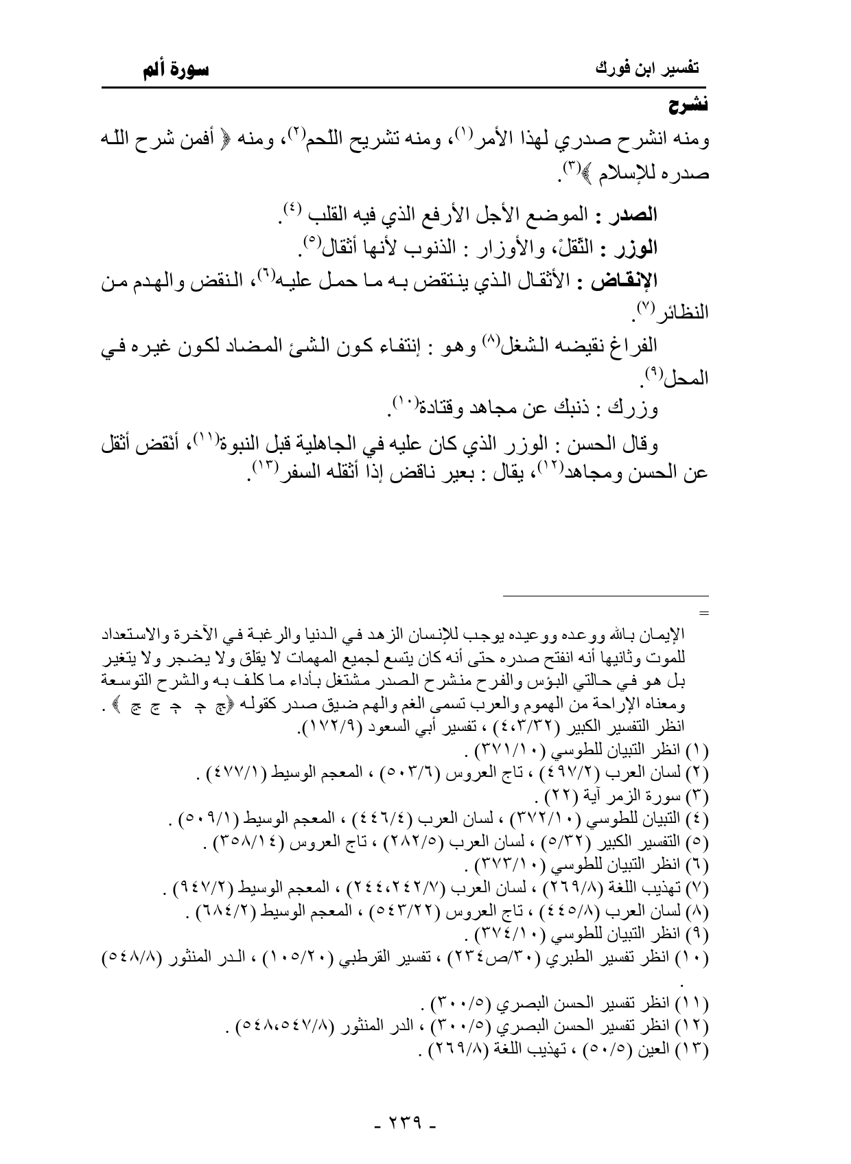 الفراغ نقيضه الشغل وهو: إنتفاء كون الشيء المضاد لكون غيره في المحل وزرك: ذنبك عن مجاهد وقتادة.