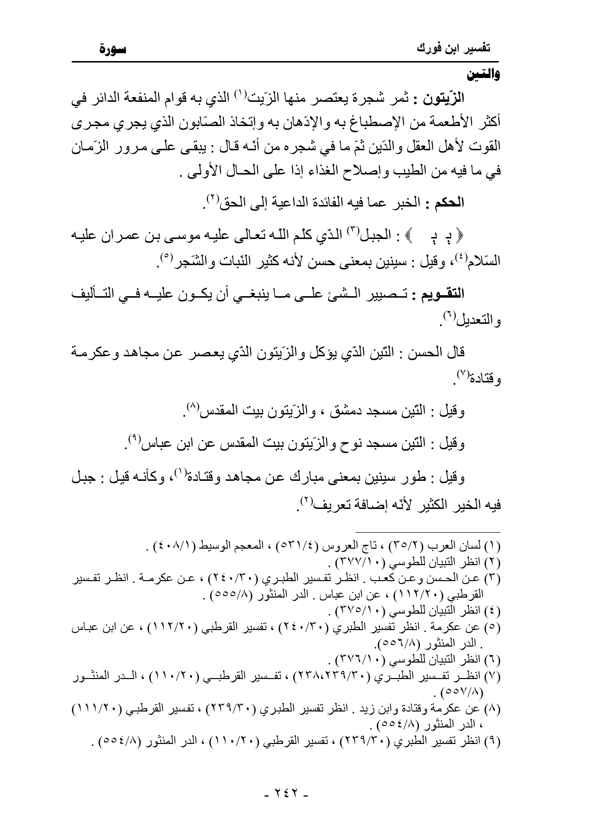 القوت لأهل العقل والدّين ثمّ ما في شجره من أنّه قال: يبقى على مرور الزّمان في ما فيه من الطيب وإصلاح الغذاء إذا على الحال الأولى.