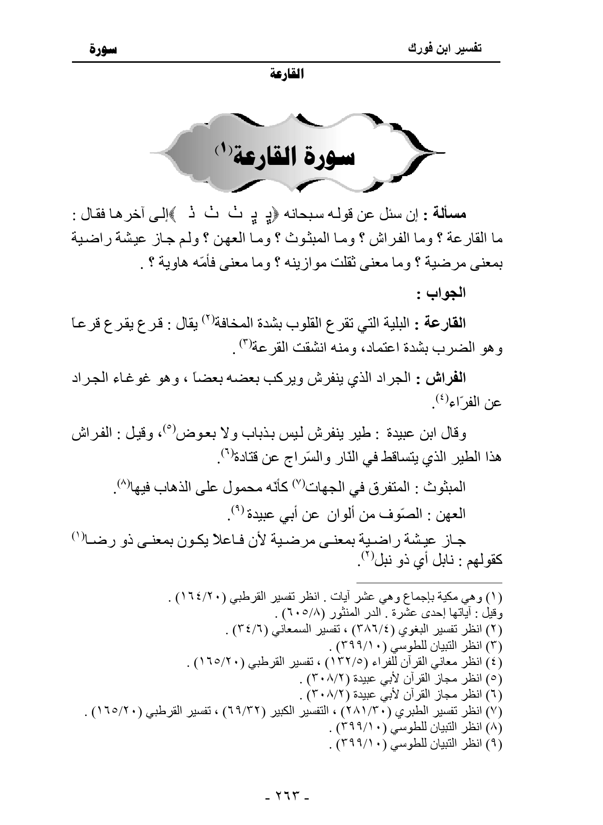 ما القارعة؟ وما الفراش؟ وما المبثوث؟ وما العهن؟ ولم جاز عيشةً راضية