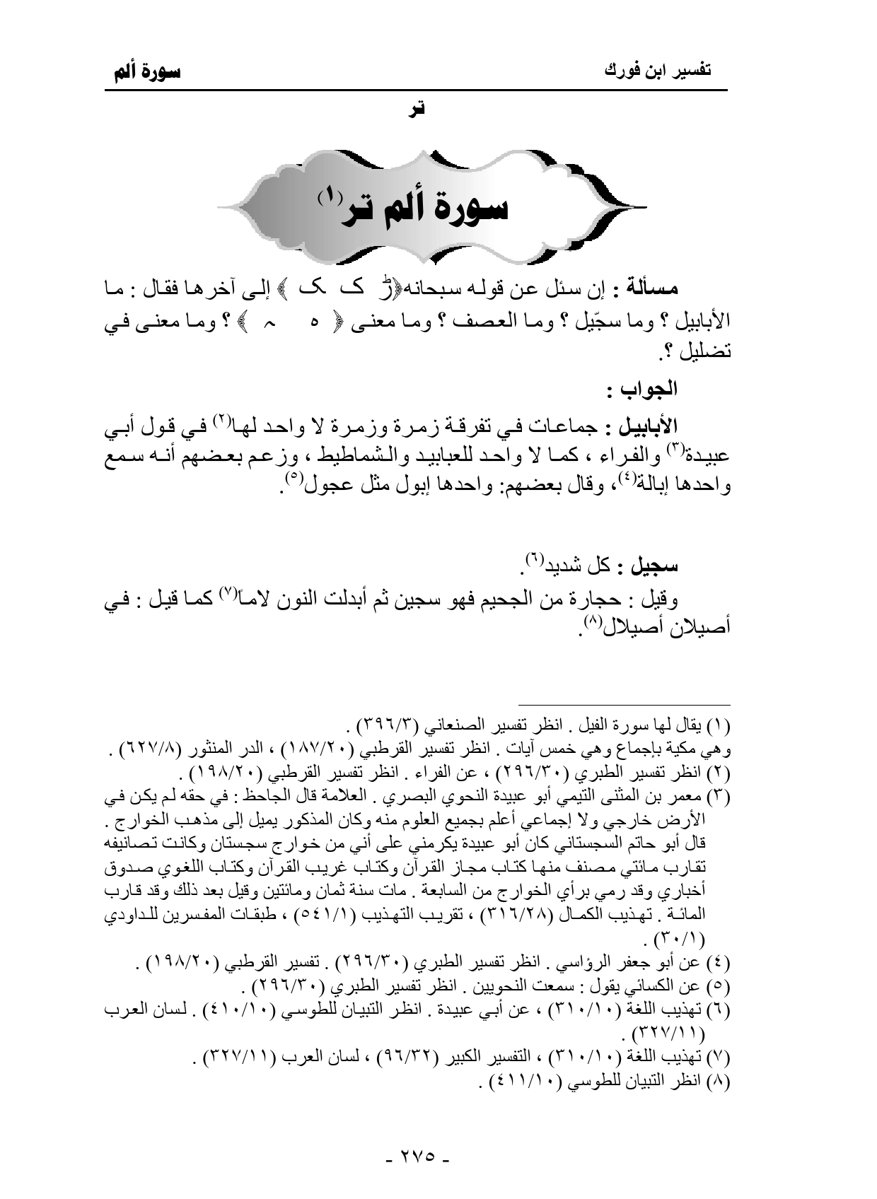 ما الأبابيل؟ وما سجّيل؟ وما العصف؟ وما معنى: تضليل؟.