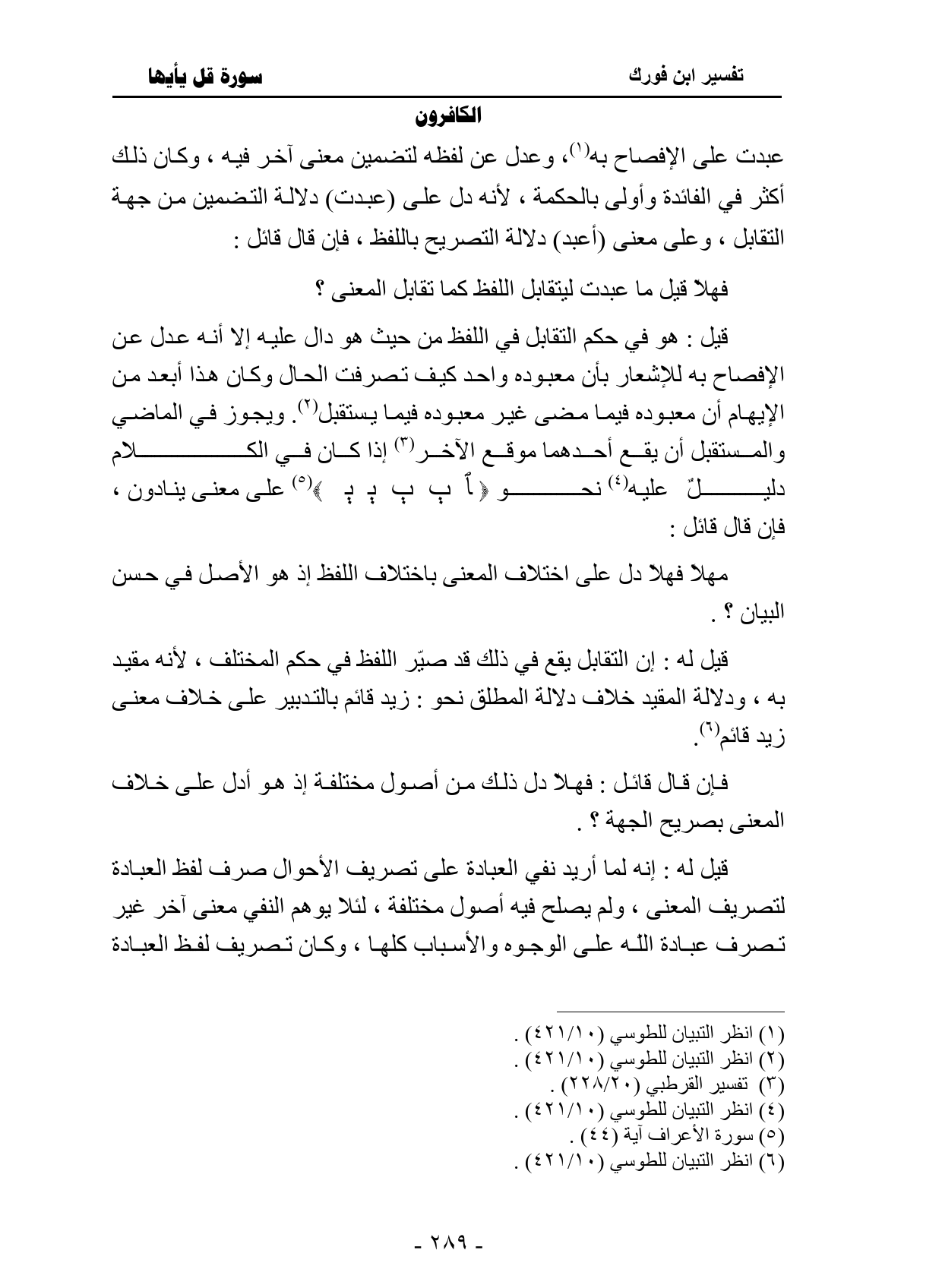 لتصريف المعنى، ولم يصلح فيه أصول مختلفة، لئلا يوهم النفي معنى آخر غير
