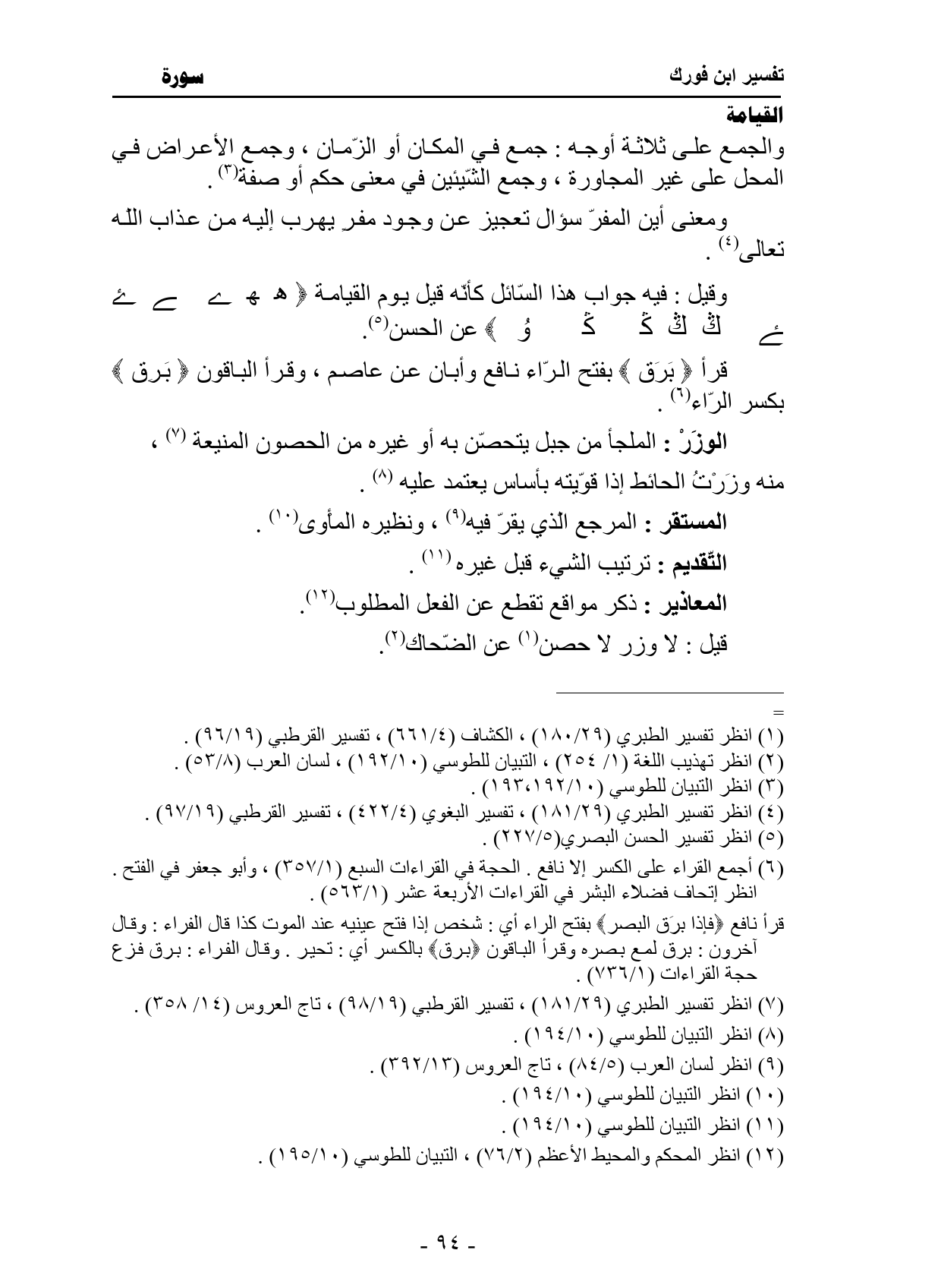 وقيل: فيه جواب هذا السّائل كأنّه قيل يوم القيامة {لَا وَزَرَ (11) إِلَى رَبِّكَ يَوْمَئِذٍ الْمُسْتَقَرُّ (12) } .