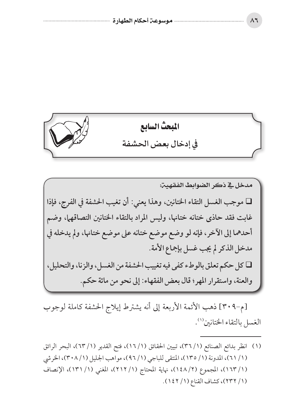 (¬١) انظر بدائع الصنائع (١/ ٣٦)، تبيين الحقائق (١/ ١٦)، فتح القدير (١/ ٦٣)، البحر الرائق (١/ ٦١)، المدونة (١/ ١٣٥)، المنتقى للباجي (١/ ٩٦)، مواهب الجليل (١/ ٣٠٨)، الخرشي (١/ ١٦٣)، المجموع (٢/ ١٤٨)، نهاية المحتاج (١/ ٢١٢)، المغني (١/ ١٣١)، الإنصاف (١/ ٢٣٢)، كشاف القناع (١/ ١٤٢).