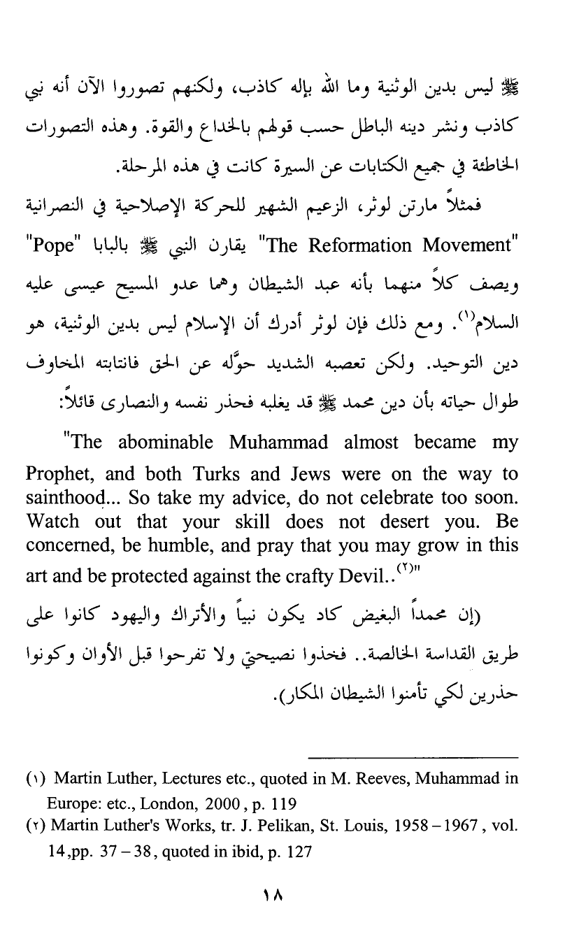 (1) Martin Luther, Lectures etc., quoted in M. Reeves, Muhammad in Europe: etc., London, , p.