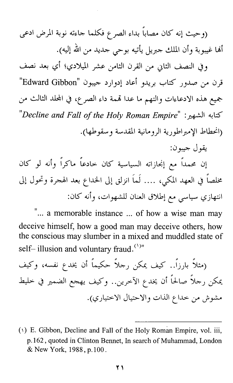 (1) E. Gibbon, Decline and Fall of the Holy Roman Empire, vol. iii, p., quoted in Clinton Bennet, In search of Muhammad, London & New York, , p..