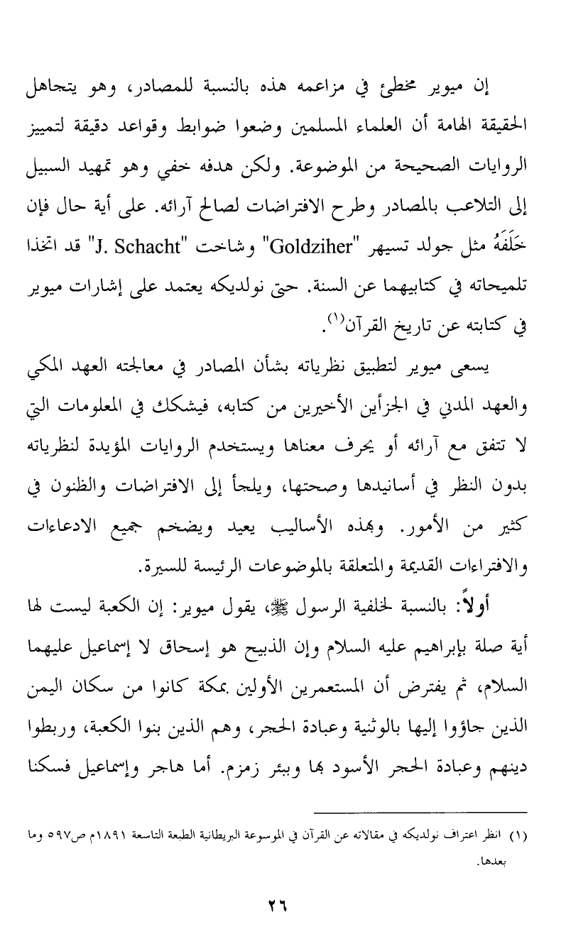 (1) انظر اعتراف نولديكه في مقالاته عن القرآن في الموسوعة البريطانية الطبعة التاسعة 1891م ص597 وما بعدها.