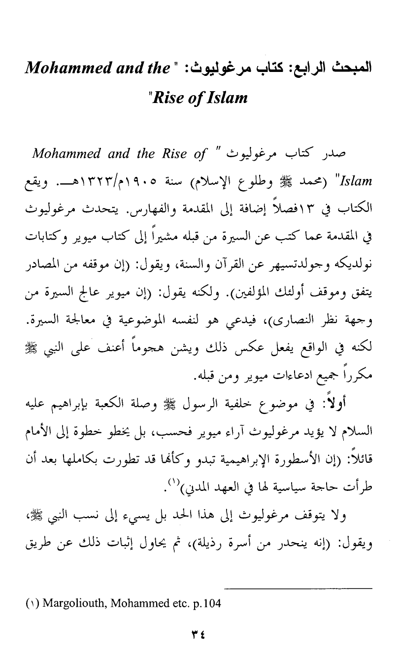 المبحث الرابع: كتاب مرغوليوث: "Mohammed and the Rise of Islam"