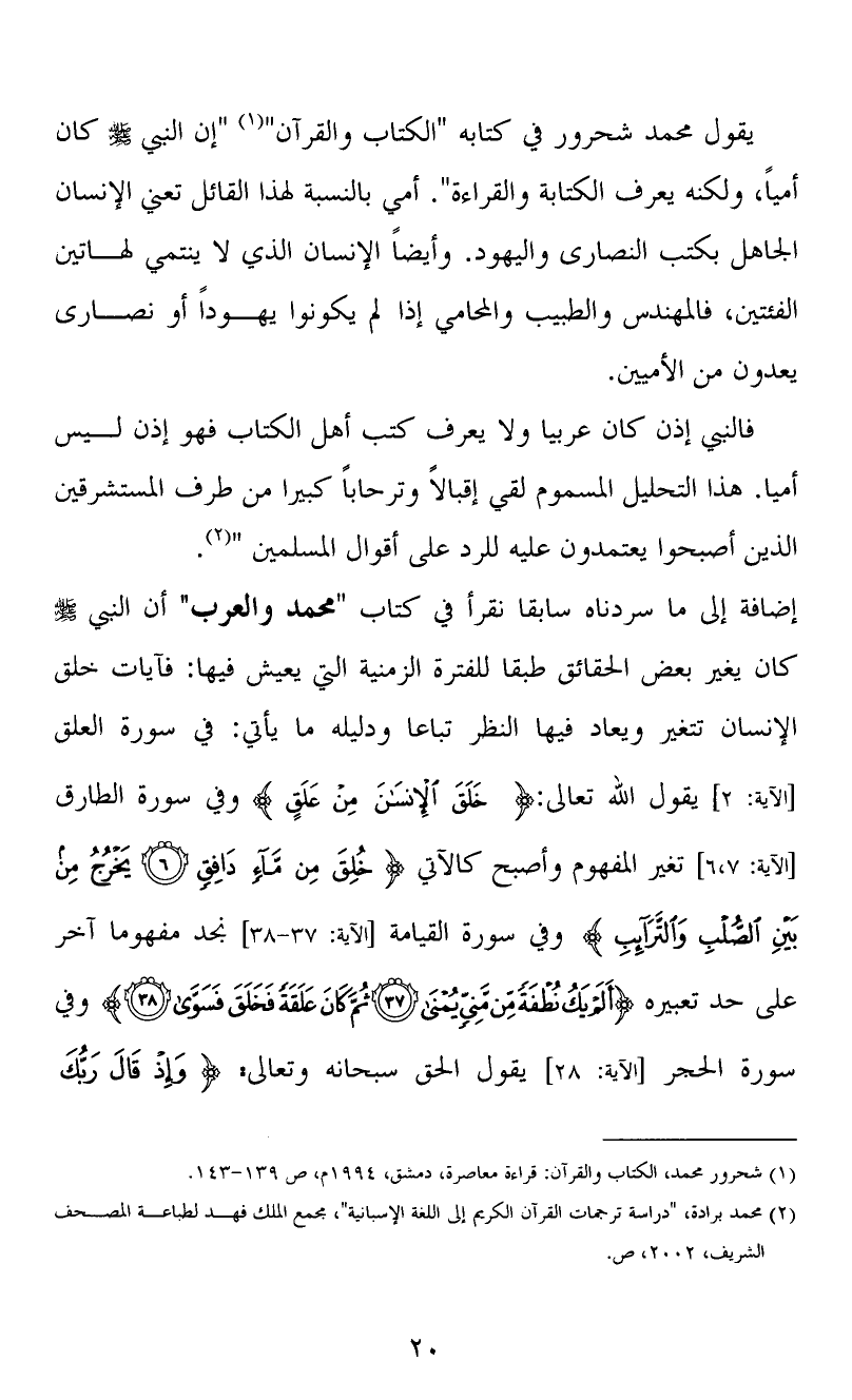 (1) شحرور محمد، الكتاب والقرآن: قراءة معاصرة، دمشق، 1994م، ص 139-143.