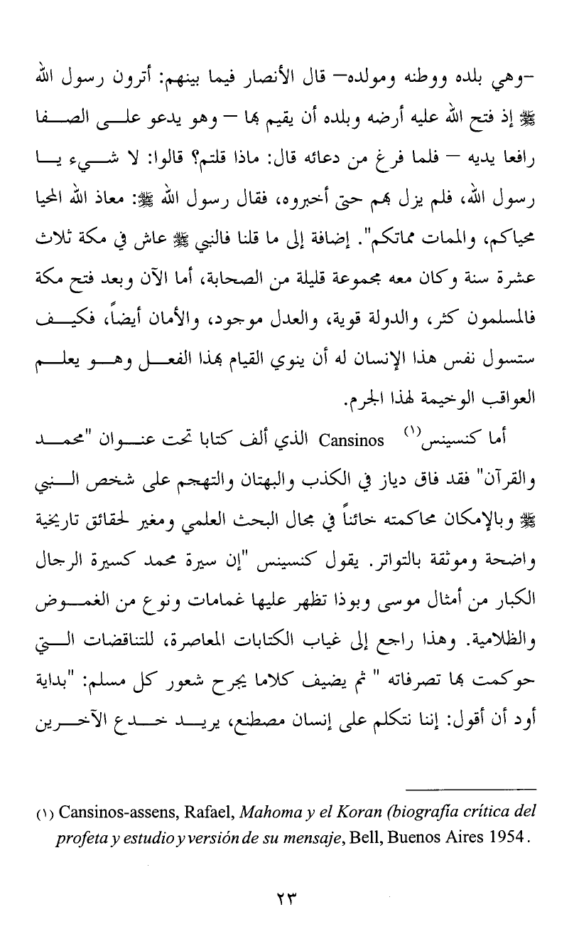 (1) Cansinos-assens, Rafael, Mahoma y el Koran (biografia critica del profeta y estudio y version de su mensaje, Bell, Buenos Aires.