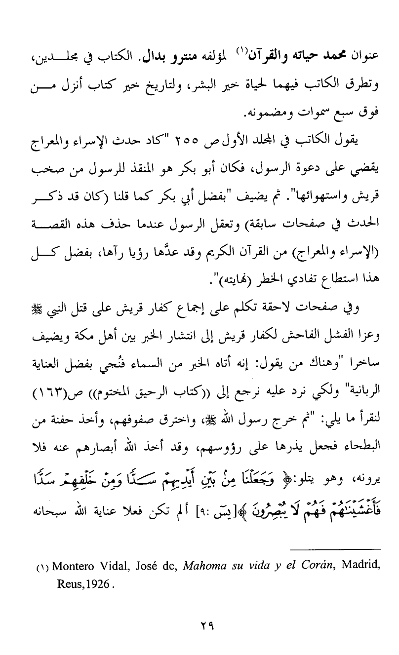 (1) Montero Vidal, José de, Mahoma su vida y el Coran, Madrid, Reus,.
