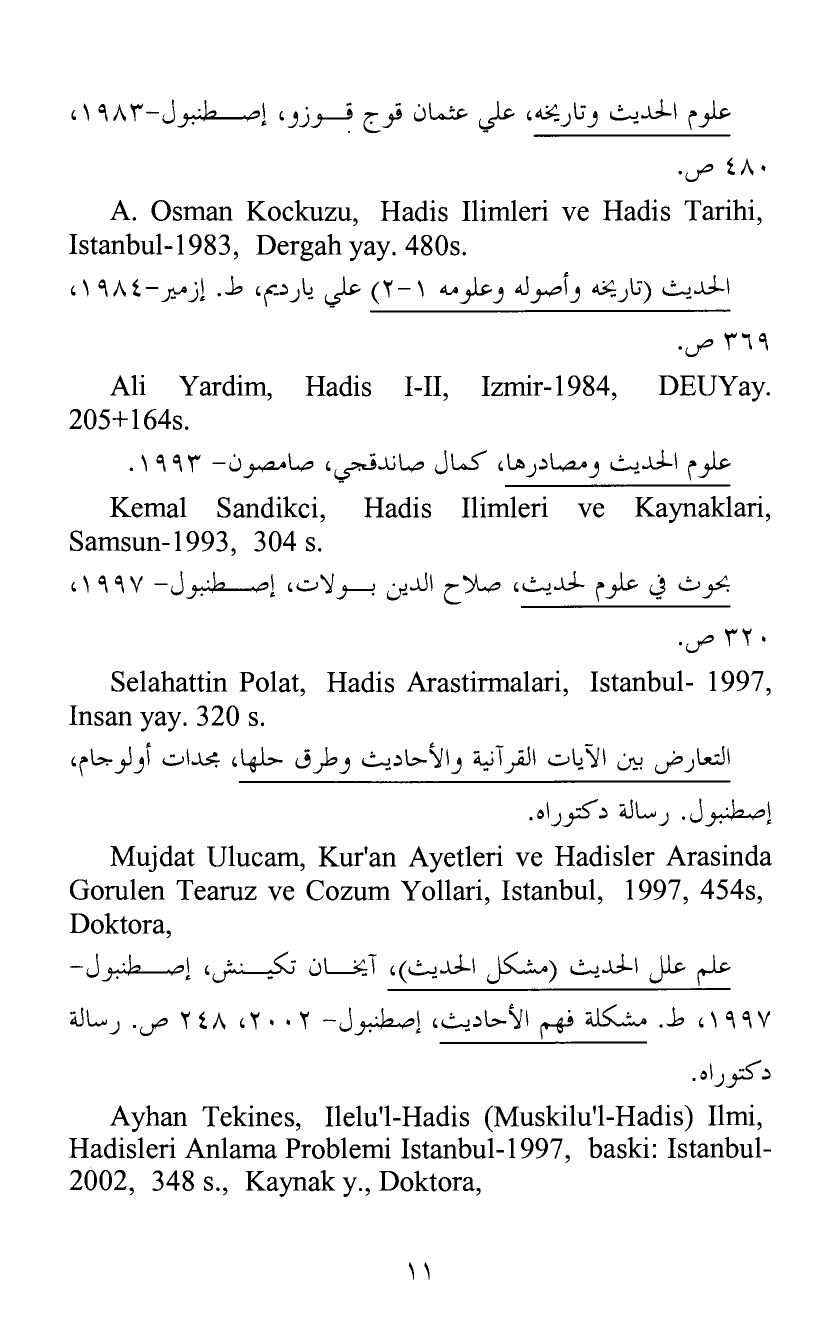 A. Osman Kockuzu, Hadis Ilimleri ve Hadis Tarihi, Istanbul-1983, Dergah yay. 480s.