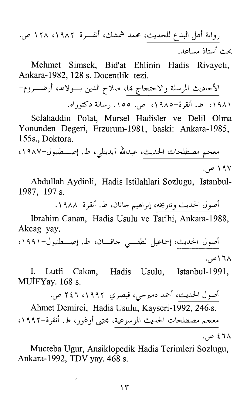 Mehmet Simsek, Bid'at Ehlinin Hadis Rivayeti, Ankara-1982, 128 s. Docentlik tezi.