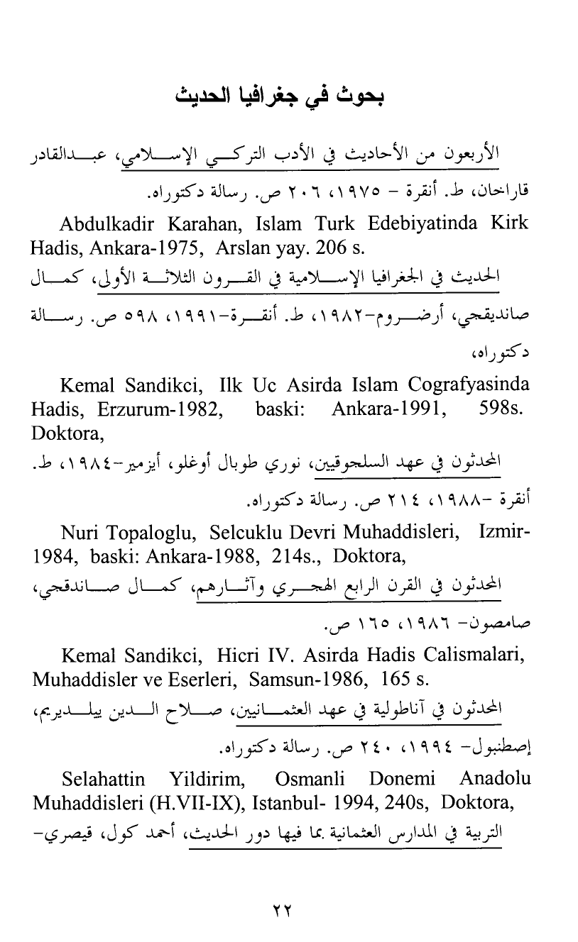 الأربعون من الأحاديث في الأدب التركي الإسلامي، عبد القادر قاراخان، ط. أنقرة - 1975، 206 ص. رسالة دكتوراه.