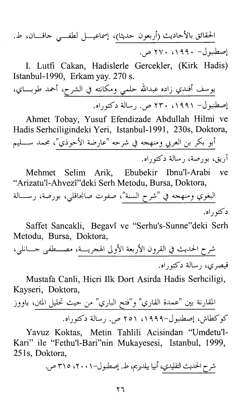شرح الحديث التقليدي، أنبيا ييلديريم، ط. إصطنبول-2001، 315 ص.