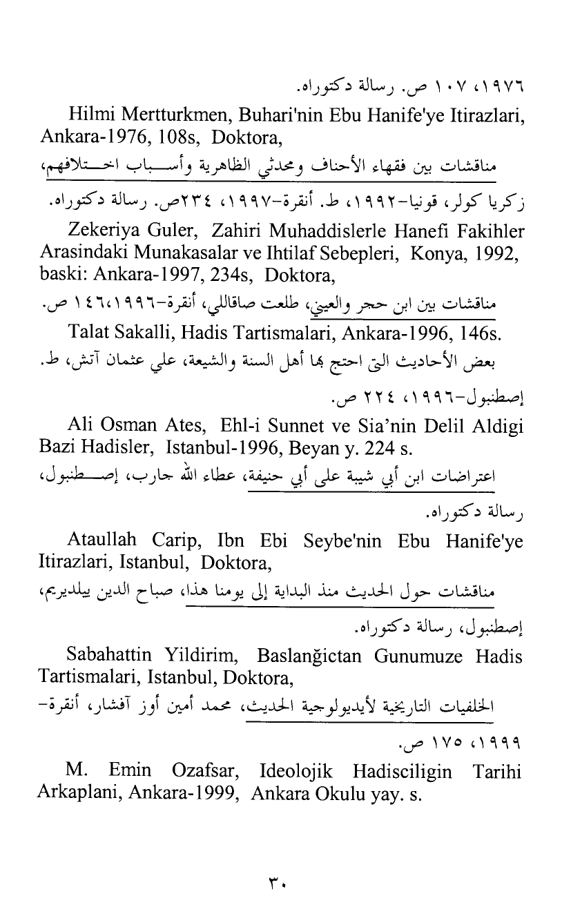 Zekeriya Guler, Zahiri Muhaddislerle Hanefi Fakihler Arasindaki Munakasalar ve Ihtilaf Sebepleri, Konya, 1992, baski: Ankara-1997, 234s, Doktora,