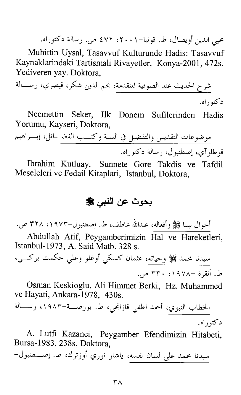 Muhittin Uysal, Tasavvuf Kulturunde Hadis: Tasavvuf Kaynaklarindaki Tartismali Rivayetler, Konya-2001, 472s. Yediveren yay. Doktora,