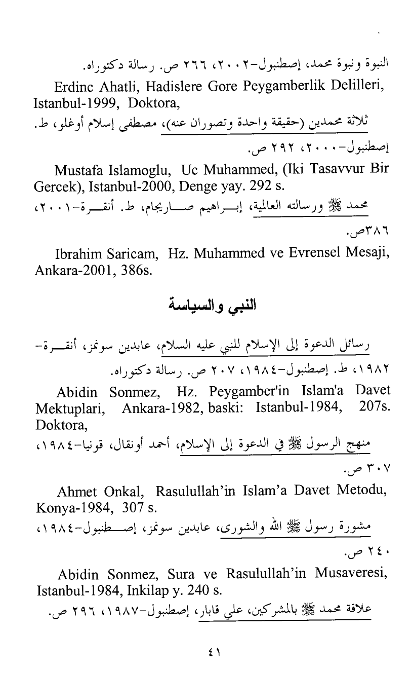 رسائل الدعوة إلى الإسلام للنبي عليه السلام، عابدين سونمز، أنقرة-1982، ط. إصطنبول-1984، 207 ص. رسالة دكتوراه.
