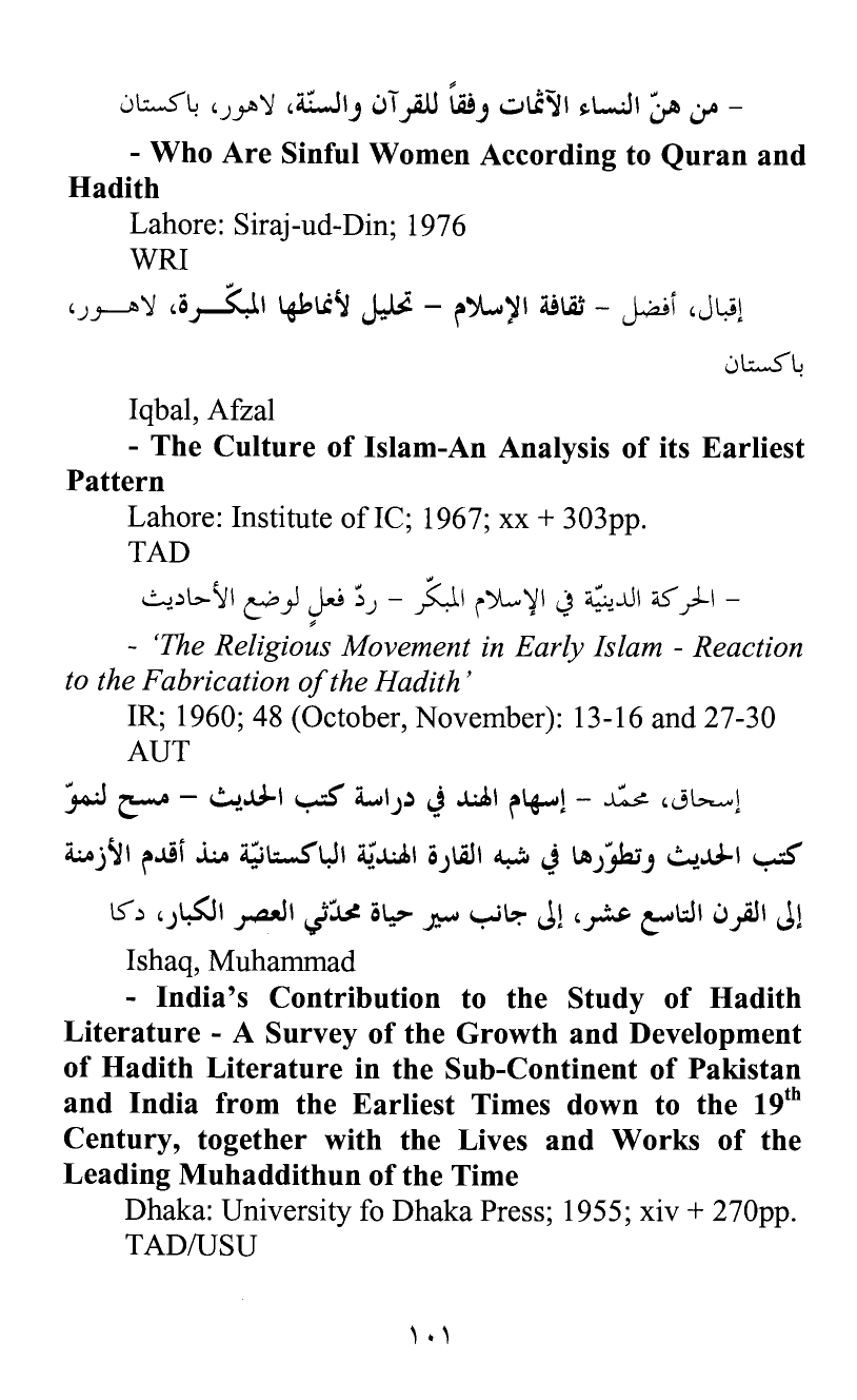 - India’s Contribution to the Study of Hadith Literature - A Survey of the Growth and Development of Hadith Literature in the Sub-Continent of Pakistan and India from the Earliest Times down to the 19th Century, together with the Lives and Works of the Leading Muhaddithun of the Time