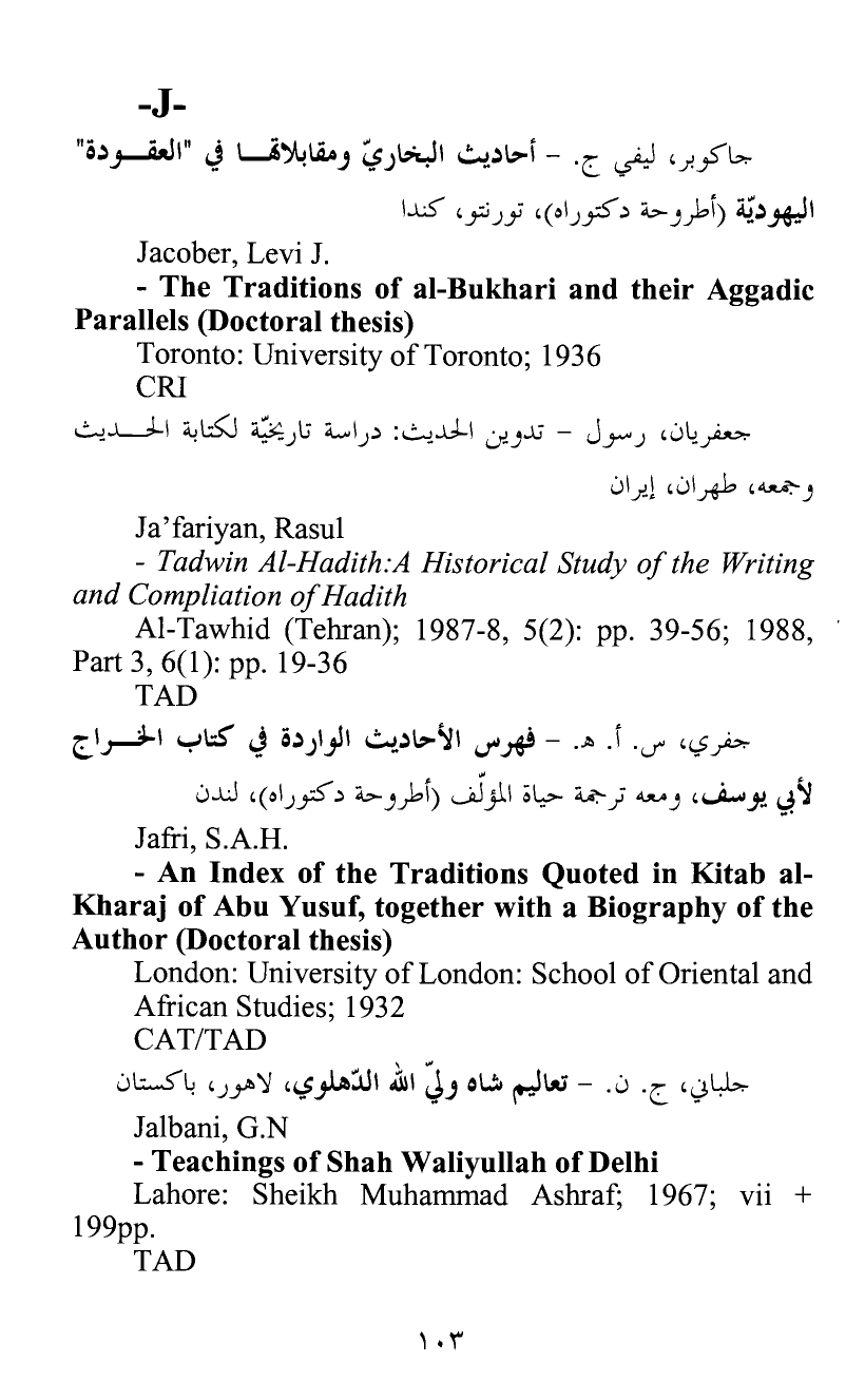 - An Index of the Traditions Quoted in Kitab al-Kharaj of Abu Yusuf, together with a Biography of the Author (Doctoral thesis)