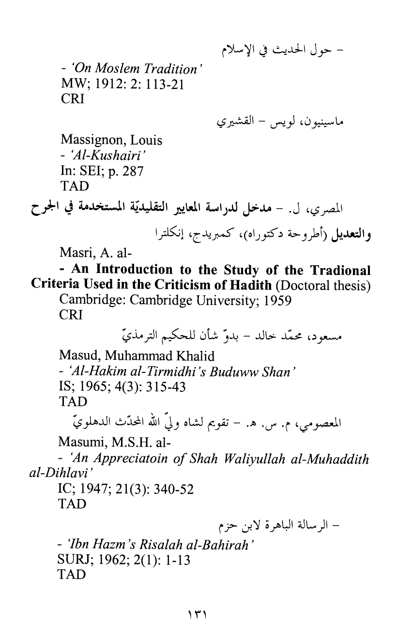 المصري، ل. - مدخل لدراسة المعايير التقليديّة المستخدمة في الجرح والتعديل (أطروحة دكتوراه) ، كمبريدج، إنكلترا