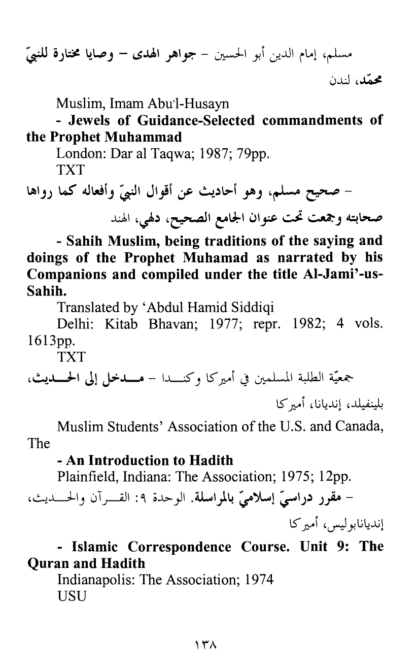- صحيح مسلم، وهو أحاديث عن أقوال النبيّ وأفعاله كما رواها صحابته وجمعت تحت عنوان الجامع الصحيح، دلهي، الهند