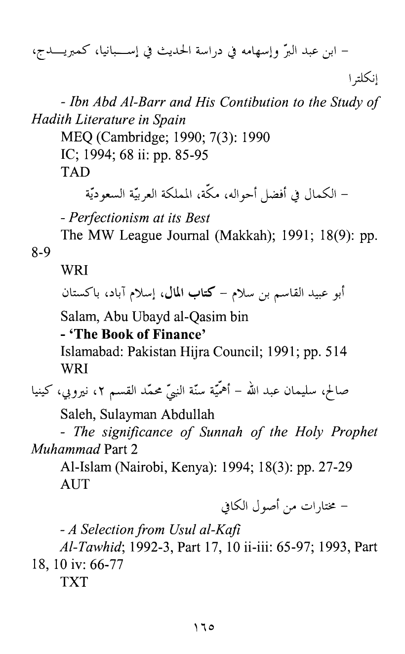 - Ibn Abd Al-Barr and His Contibution to the Study of Hadith Literature in Spain