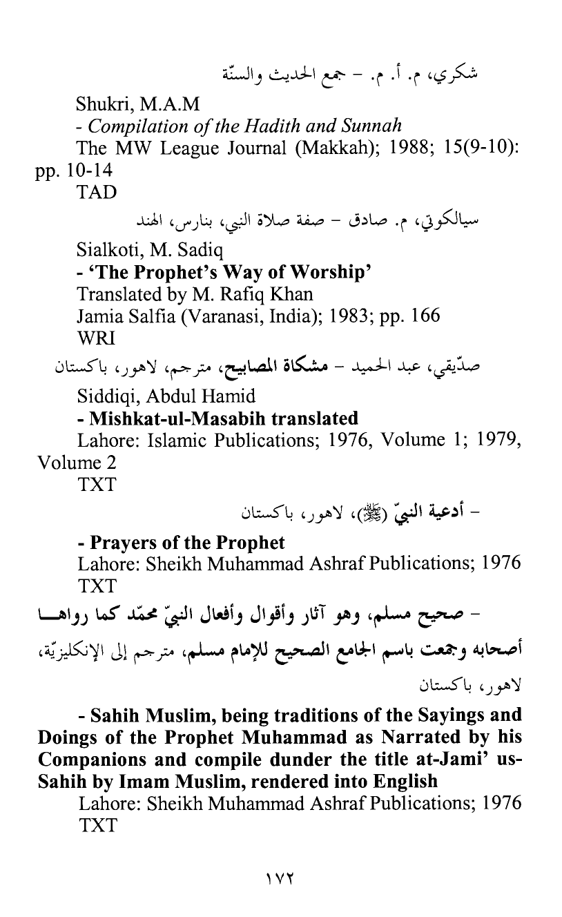 - صحيح مسلم، وهو آثار وأقوال وأفعال النبيّ محمّد كما رواها أصحابه وجمعت باسم الجامع الصحيح للإمام مسلم، مترجم إلى الإنكليزيّة، لاهور، باكستان