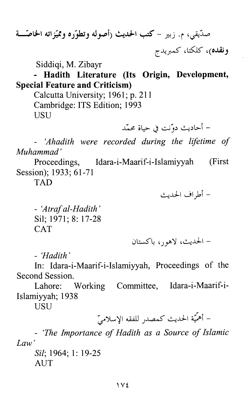 صدّيقي، م. زبير - كتب الحديث (أصوله وتطوّره ومميّزاته الخاصّة ونقده) ، كلكتا، كمبريدج