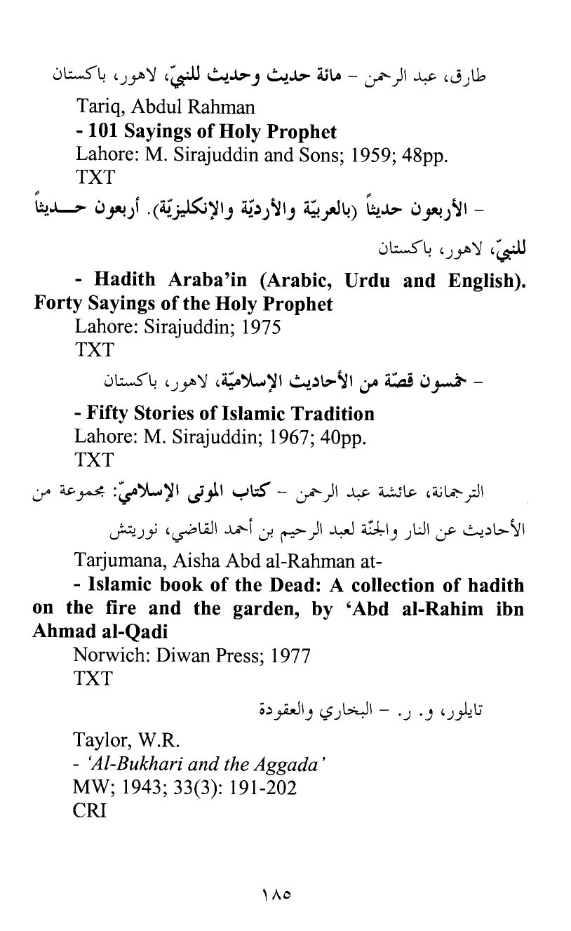 - Hadith Araba’in (Arabic, Urdu and English) . Forty Sayings of the Holy Prophet