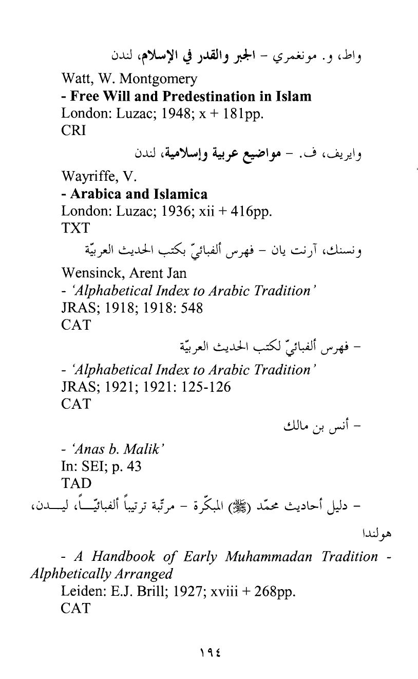 - A Handbook of Early Muhammadan Tradition - Alphbetically Arranged